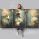 Step into the depths with Deep Grace — a breathtaking three-piece collection printed on premium heavyweight decoupage craft paper. This enchanting set brings together a majestic golden betta fish with billowing fins, a serene woman floating in a cream ballgown beneath the water's surface, and luminous white coral emerging from the deep — all rendered in a richly textured oil painting style.