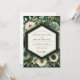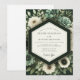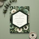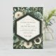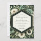An elegant, deep green botanical design features muted ivory roses and succulent foliage. The artwork evokes a sophisticated, natural ambiance with rich, earthy tones. This design is perfect for a refined, nature-inspired occasion.