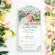 Gorgeous all in one wedding invitation you can personalize with a photo of the two of you beneath floral line art in green. Add your names in a large font and an informal wedding invitation wording beneath. RSVP is included in this all in one wedding invitation and features more pretty floral line art.