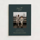 Elegant deep green and gold wedding card save the date featuring your favourite photo. The rich green background with subtle gold lettering creates a timeless and sophisticated design. Perfect for couples who love modern style with a touch of classic luxury. All text and fonts are fully customisable, making it easy to match your unique wedding theme.