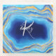 Deep Indigo Agate Marble Abstract Name Monogram Co Glass Coaster