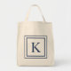 Clean, modern white background with double ribbon square border design and customisable monogram in the centre. Double sided design. Personalisation options available for select products