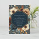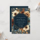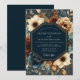 Rich floral illustrations in deep navy and burnt orange tones create a dramatic and opulent aesthetic. Hints of cream and teal add depth to the abundant blooms, evoking a sense of twilight romance. This design is perfect for a sophisticated, nature-inspired event.