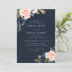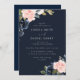 Deep Navy Blue & Blush Floral Wedding Invitation