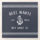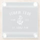 Add a cool custom touch to your fishing boat, sailboat, yacht, or houseboat with these personalised glass coasters. Nautical design in deep, rich navy blue features your boat name, year established, and ship's registry in rustic white lettering with an anchor illustration in the centre.
