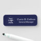 Create a refined and professional appearance with this deep navy blue and white name tag design. The classic color pairing offers strong contrast and clear readability while maintaining a clean, modern look. Ideal for offices, corporate events, retail teams, schools, and conferences, this customizable name tag can be personalized with your name, title, and company details. Its timeless style ensures versatility across industries, making it a dependable choice for everyday staff identification and polished brand presentation.