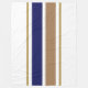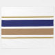 This chic, sporty design features a white background with wide light brown and navy blue centre horizontal stripes adjoined with warm brown pinstripes.