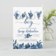 This is modern trendy boy baby shower invitation fetures deep navy blue florals and silver foil lettering in boho style