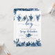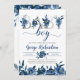Deep Navy Floral and Silver Letters Baby Boy Boho Invitation