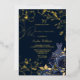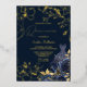 Deep Navy Floral & Dress Quinceanera Gold Leaves Foil Invitation