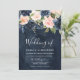 Deep Navy Watercolor Blush Pink Floral Wedding Invitation