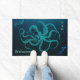 Deep Ocean Blue with Octopus & 2 Schools of Fish Doormat with Initials and the word Welcome.