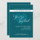 A simple, minimalist birthday invite in rich deep petrol, featuring a large “You’re Invited” in a handwritten-style script over a soft teal heart for a warm, welcoming feel.