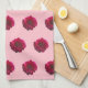 Seamless pattern of deep pink Dahlia flower printed on kitchen towel. Floral design kitchen towel for lovers of flowers or nature.