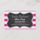 Deep Pink Horizontal Stripes; Chalkboard look Business Card