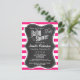 Deep Pink Horizontal Stripes; Chalkboard look Invitation Postcard