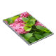 Stunning deep pink hydrangeas in full bloom with their bright green leafy foliage.