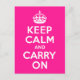 Deep Pink Keep Calm and Carry On Postcard