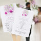 Beautiful painted watercolor floral fuchsias wedding program fan design part of the fuchsia flower art wedding collection. Pretty shades of dark purple pink, light pink, green and white. Edit this wedding program with your own name, date, wedding party attendants on one side, ceremony wording, and thanks on the other. Simple yet elegant program, simply replace sample text with your wedding information details. Unique design and original botanical watercolor fuchsia flower fine art painting by Sarah Trett for www.mylittleedenweddings.com and www.mylittleeden.com
