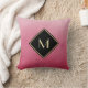 Deep Pink Watercolor With Black and Gold Monogram Cushion