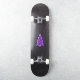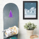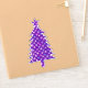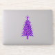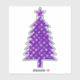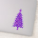 Sticker in a classic silhouette of a Christmas tree in deep amethyst purple, patterned with satin textured stars in pink, ice blue and violet