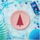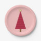 A simplified modern take on a classic Christmas tree motif, deep red quilted satin damask on a salmon pink background