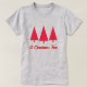 Tee in a simplified modern take on a classic Christmas tree motif, deep red quilted satin damask on a salmon pink background, with customisable text