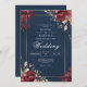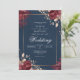 Deep Red Floral Navy Border Wedding Invitation
