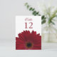 Use the personalise option to change the table number on these deep red gerbera daisy table cards. If you want to do more extensive changes including changing the font, font colour, or background colour, use the customise option.
