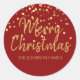Deep RED Gold Glitter Confetti Merry Christmas Classic Round Sticker