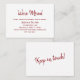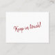 Keep your friends and family up to date with your new address using these simple, elegant enclosure cards. Versatile notes read "We''ve Moved" on the front and "Keep in Touch!" on the back, using a modern, casual, handwritten script font. Use the template fields to add all your own details to personalise this design for your personal use. The deep red type was placed over editable white; you can change the background to any colour you wish... or even add an image, if you prefer. Likewise the fonts or their colours can be changed if you want to edit the design a bit more. // Designed by Melody Watson for Paper Muserie.