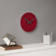 Deep Red Quilted Leather Pattern Round Clock