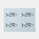 A yellowfin tuna pattern decorates this deep sea fishing theme doormat. Yellowfin tuna are associated with deep sea fishing, commercial fishing, and coastal communities around the world. This doormat will look great at the marina, home, office, or for other uses.