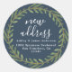 Deep Teal Christmas Greenery New Address Classic Round Sticker