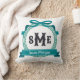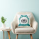 This charming chinoiserie-style throw pillow features a full monogram framed by a classic Greek key circle and topped with a sweet bow. A personalised name banner adds a refined, custom touch that makes this design perfect for gifting or styling a preppy home. With its grandmillennial elegance and Palm Beach chic influence, it’s an ideal accent for nursery gliders, bedroom armchairs, or curated sitting rooms.