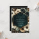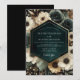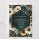 Evoke a sense of sophisticated romance with this exquisite design featuring deep teal blooms and creamy anemones. The rich, dark floral arrangement creates a moody and elegant atmosphere, perfect for an opulent affair. A touch of deep green foliage adds depth to the captivating visual.