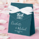These elegant Deep Teal Script Minimalist Wedding Favour Boxes are the perfect finishing touch to your special day. Personalised with the names of the bride and groom and the wedding date, these customised favour boxes are sure to impress your guests.