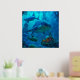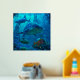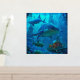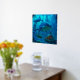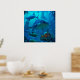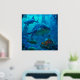 Decorate your wall or corner in your home office with this gold or silver foil poster—a Deep under the sea marine animals and a steampunk submarine.