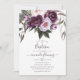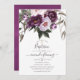 Violet and plum boho floral hand painted watercolor baptism invitation with elegant handwriting typography.