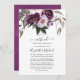 Violet and lilac boho floral hand painted watercolor online long distance virtual wedding ceremony invitation with elegant handwriting typography designed to be quickly and easily customised.