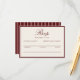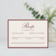 Deep Wine old money wedding RSVP cards designed for a refined, heirloom-inspired celebration. This Deep Wine and Dried Rose RSVP card features classic Old World calligraphy paired with a subtle heritage stripe backing for a timeless editorial look. Inspired by 2026 Winecore and Estate formal aesthetics, it’s perfect for the traditional yet style-aware bride. Pair with wax seals, velvet ribbon, or layered envelopes to complete your suite. Personalise to coordinate beautifully.