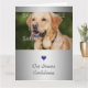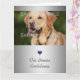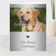A beautiful template photograph of the face of an adult golden retriever / labrador framed by a faux silver background that has a single faux blue heart edged with diamonds below which the words "our sincere condolences" appear in a flowing script. Personalise the photo; the wording and background colours to ensure the finished condolence message is suited to the animal you are remembering.