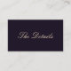 This elegant black tinted violet purple wedding guest details card can be used to provide additional information your guests may need to know. This can include driving directions, reception information, hotel information, or simply a wedding website where your guests can find more details.