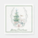 Christmas themed paper napkins with a thin green border around the edge and beautiful watercolor graphics of a white deer and Christmas tree. Custom green text, on the bottom, can be personalised to read what you want.