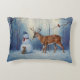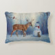 Deer and Happy Snowman Winter Holiday Scene Decorative Cushion