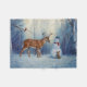 Deer and Happy Snowman Winter Holiday Scene Fleece Blanket