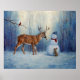 Deer and Happy Snowman Winter Holiday Scene Poster