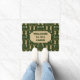 This is a cute door mat which is perfect for a cabin or woodland home. It features a pattern of light gold buck deer head silhouettes and white arrows on a background of dark forest green. At the centre is a matching label with your custom text, also in dark forest green. Currently it says "WELCOME to the CABIN" but you may easily customise it to your own text.