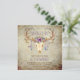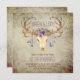 Rustic southwestern wedding invitation with feather and jewel draped deer skull on a rustic vintage background. This beautiful and rustic ornate deer antler deer skull wedding invitation is easily customised for your event by simply adding your details in the font style and colour and wording of your choice.