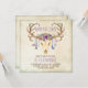 Rustic southwestern wedding invitation with feather and jewel draped deer skull on a rustic vintage background. This beautiful and rustic ornate deer antler deer skull wedding invitation is easily customised for your event by simply adding your details in the font style and colour and wording of your choice.